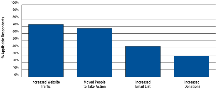As you’ll see from the graph above, most nonprofits report using Facebook to increase website traffic and get people to act.